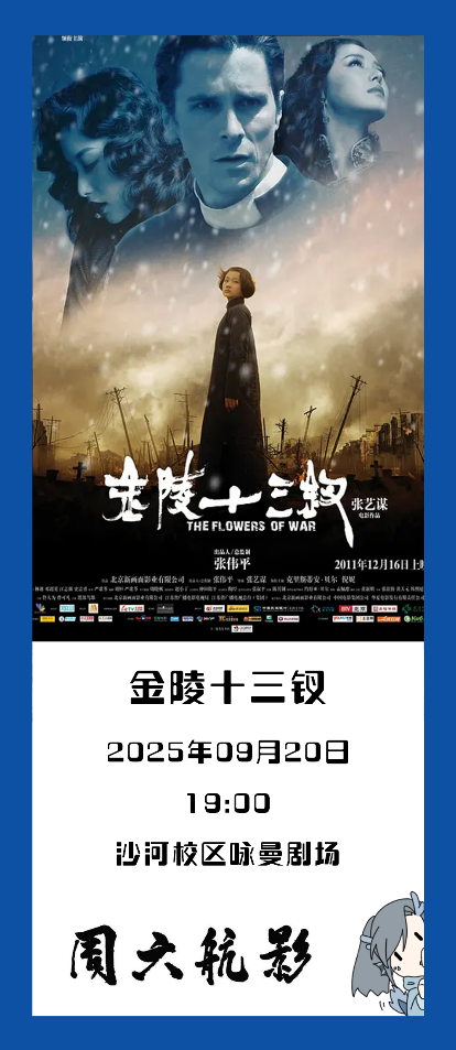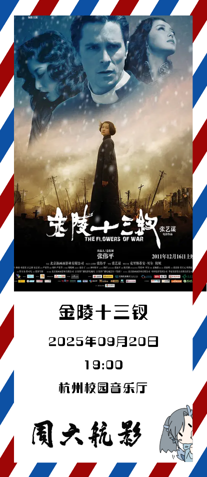 「周六航影」第二周让我们一起走进《金陵十三钗》看硝烟弥漫的南京城里不同身份的人如何在绝境中抉择,感受人性微光如何穿透黑暗。